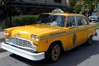 The taxis in New York are yellows. Between the passenger and the driver is a bulletproef glass.